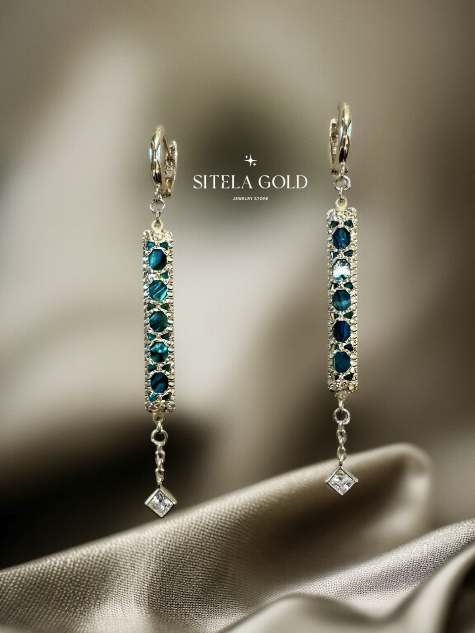 Изящни златни висящи обици , вграден естествен седеф ✨