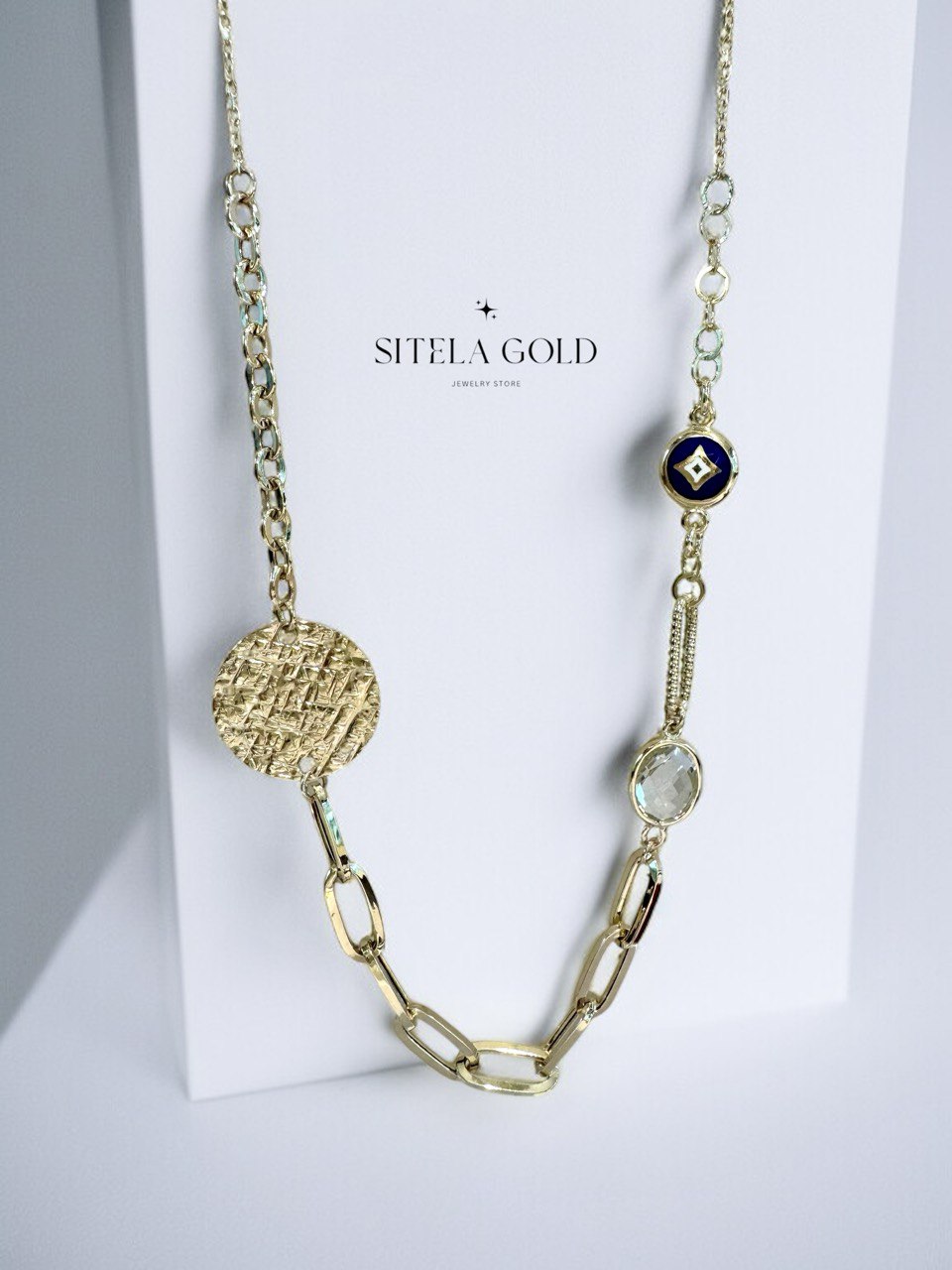 Елегантно колие , съчетание на естествени камъни в обков и вградени елементи ✨