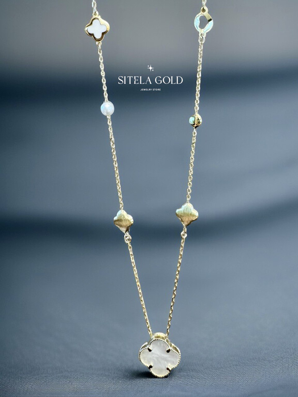 Златно колие с естествен седеф в обков , емайл и перла за разкош