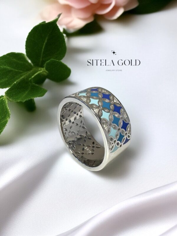 Изящен сребърен пръстен рисуван емайл с цирконий ✨